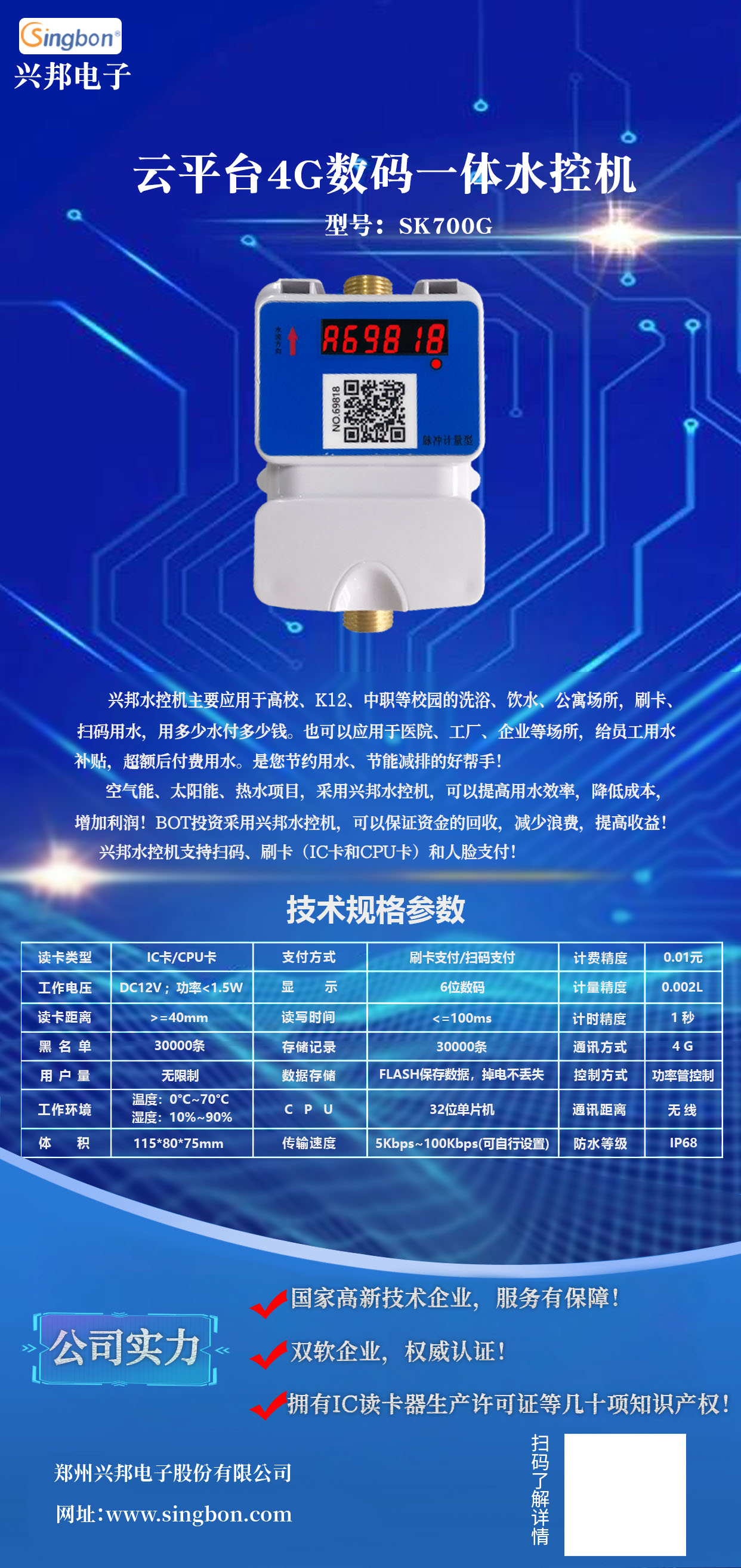 云平臺(tái)4G數(shù)碼一體水控機(jī)適用于學(xué)校、工廠、醫(yī)院等單位的公寓、宿舍洗浴等各種需要節(jié)水的場所。