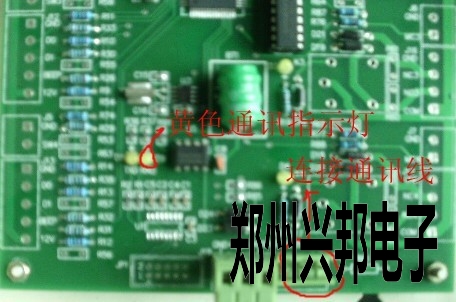 用通訊線將主控器和電腦連接好后,要注意通訊線的正負極不能接反,如果如圖四所示位置的黃色指示燈常亮的話說明通訊線路沒有連接正確,如果通訊線路連接正常的話,黃色指示燈是處在熄滅狀態(tài)的。(如圖四所示:)