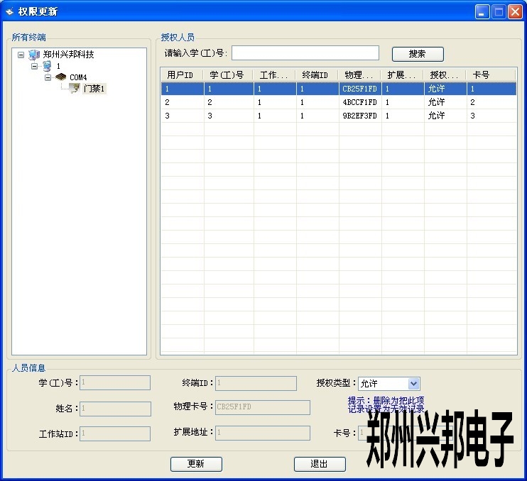 3.單擊【更新】即可改變該人員的開門權(quán)限.