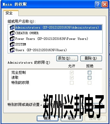 3. 選中Main右擊,選擇“權(quán)限”選項(xiàng),在彈出來的“Main的權(quán)限”界面下,選中組或用戶名稱下內(nèi)容,在“完全控制”選項(xiàng)中,在“允許”下方打“V "