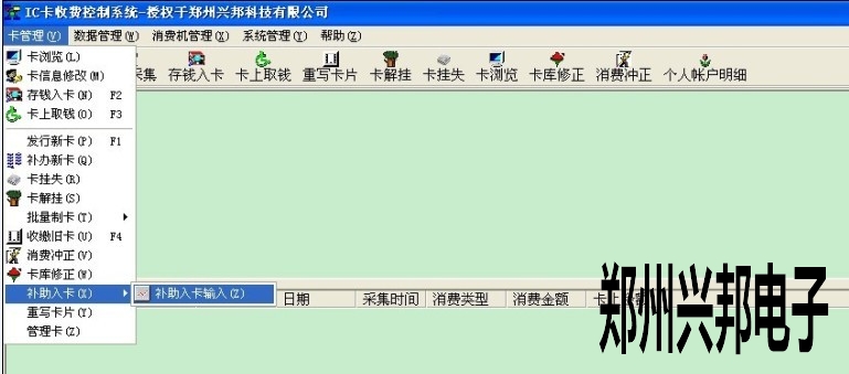 1. 485售飯機(jī)軟件打開后,點(diǎn)一下卡管理--補(bǔ)助入卡--補(bǔ)助入卡輸入,添加上人員及補(bǔ)助信息后,關(guān)閉此畫面,如下圖所示。