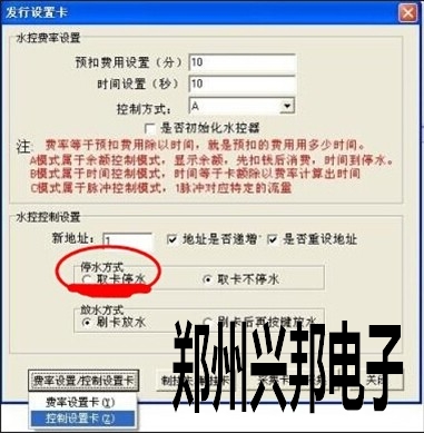 2、水控機(jī)費(fèi)率過(guò)大,將水控機(jī)費(fèi)率換算成最小單位,或者是將水控機(jī)停水方式改為拔卡停水即可。