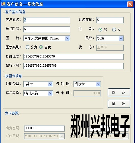 注意:學(xué)工號(hào)是不能修改的,卡一旦發(fā)行后學(xué)工號(hào)是不允許修改的,學(xué)工號(hào)在系統(tǒng)中是唯一標(biāo)識(shí),不允許重復(fù)。