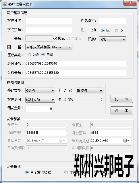 單個發(fā)卡是現(xiàn)將基本信息填寫完成后將卡片放在讀卡器上直接進(jìn)行發(fā)卡。有單個發(fā)卡模式和連續(xù)發(fā)卡模式兩種發(fā)卡模式。