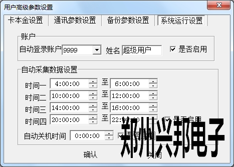 自動采集數(shù)據(jù)設(shè)置可以設(shè)置四個進(jìn)行自動采集的時間段,時間段進(jìn)行設(shè)置時不能交叉,不能跨天,時間段時間由大到小進(jìn)行設(shè)置。在機(jī)器聯(lián)機(jī)的情況下機(jī)器可以在設(shè)置好的時間段內(nèi)進(jìn)行自動采集數(shù)據(jù)。
