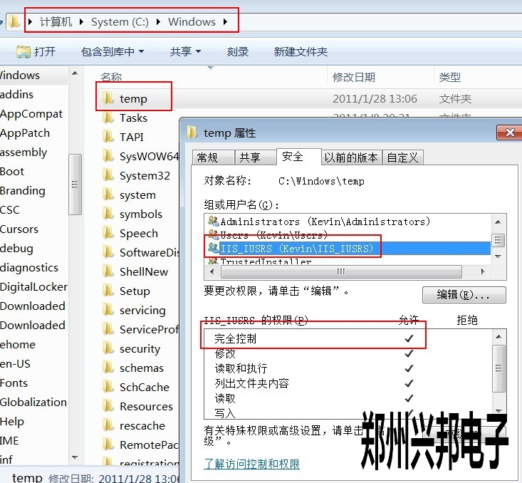 客戶購買了我們CAN平臺的IC卡食堂刷卡機,在安裝CAN軟件的時候提示配置有誤,重新配置后還是這樣,然后瀏覽webservice時出現(xiàn)以下錯誤: CS0016: 未能寫入輸出文件給C:\Windows\temp 文件夾賦予完全控制權(quán)限.