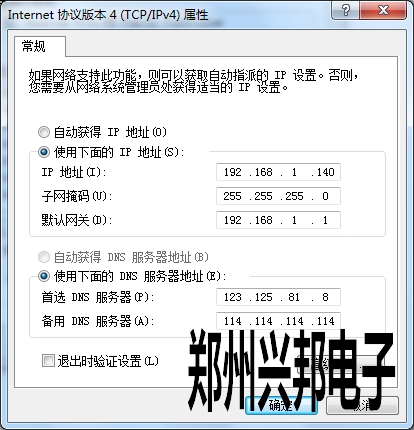 3、子網(wǎng)掩碼采用默認(rèn)設(shè)置,網(wǎng)關(guān)填寫要與網(wǎng)段一致,192.168. 所才網(wǎng)關(guān) .1。
