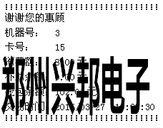 ② 計算模式:輸入扣費金額,按[確認]鍵,將卡片放于卡區(qū),即可進行扣費,若連接的有打印機,可直接打印消費明細,打印出的信息如下圖所示: