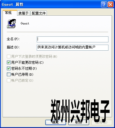 右擊“gust”“屬性”將“賬戶已停用”對(duì)勾去掉“確定”