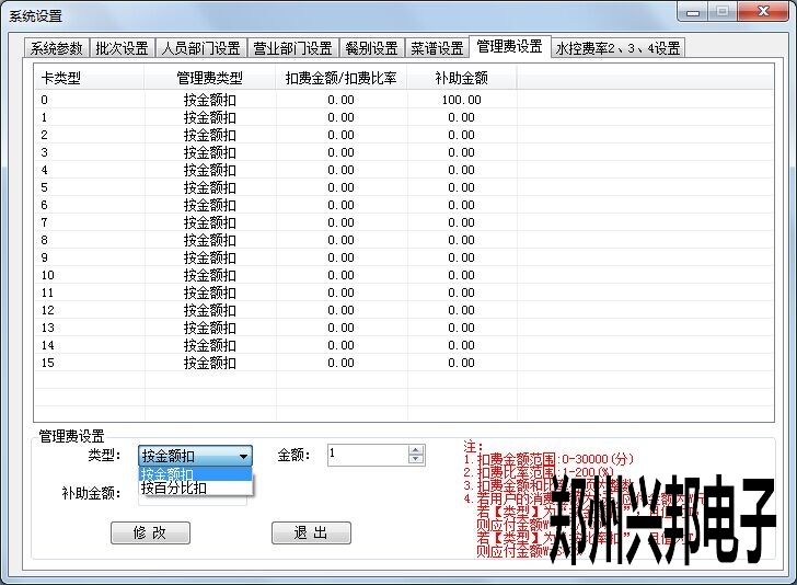 如上圖所示,可以根據(jù)卡類(lèi)型設(shè)置不同的優(yōu)惠比例,比例的范圍是1-200%,如果是打九折,百分比設(shè)置為90%就可以了,如果是打八折,百分比設(shè)置為80%就可以了。
