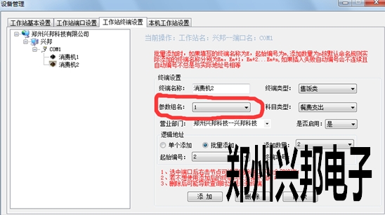 終端參數(shù)類型的選擇:打開設備設置,在工作站終端設置里,添加終端里可以選擇參數(shù)組名,或者添加終端后也可以修改選擇的參數(shù)組名。