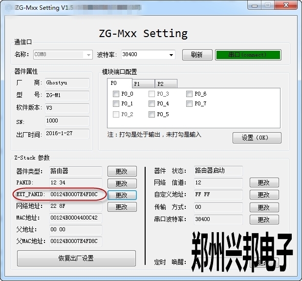 第一步:取之前的網(wǎng)絡(luò)中的一個路由器設(shè)備,使用Setting軟件讀取其擴(kuò)展PANID,如下圖: