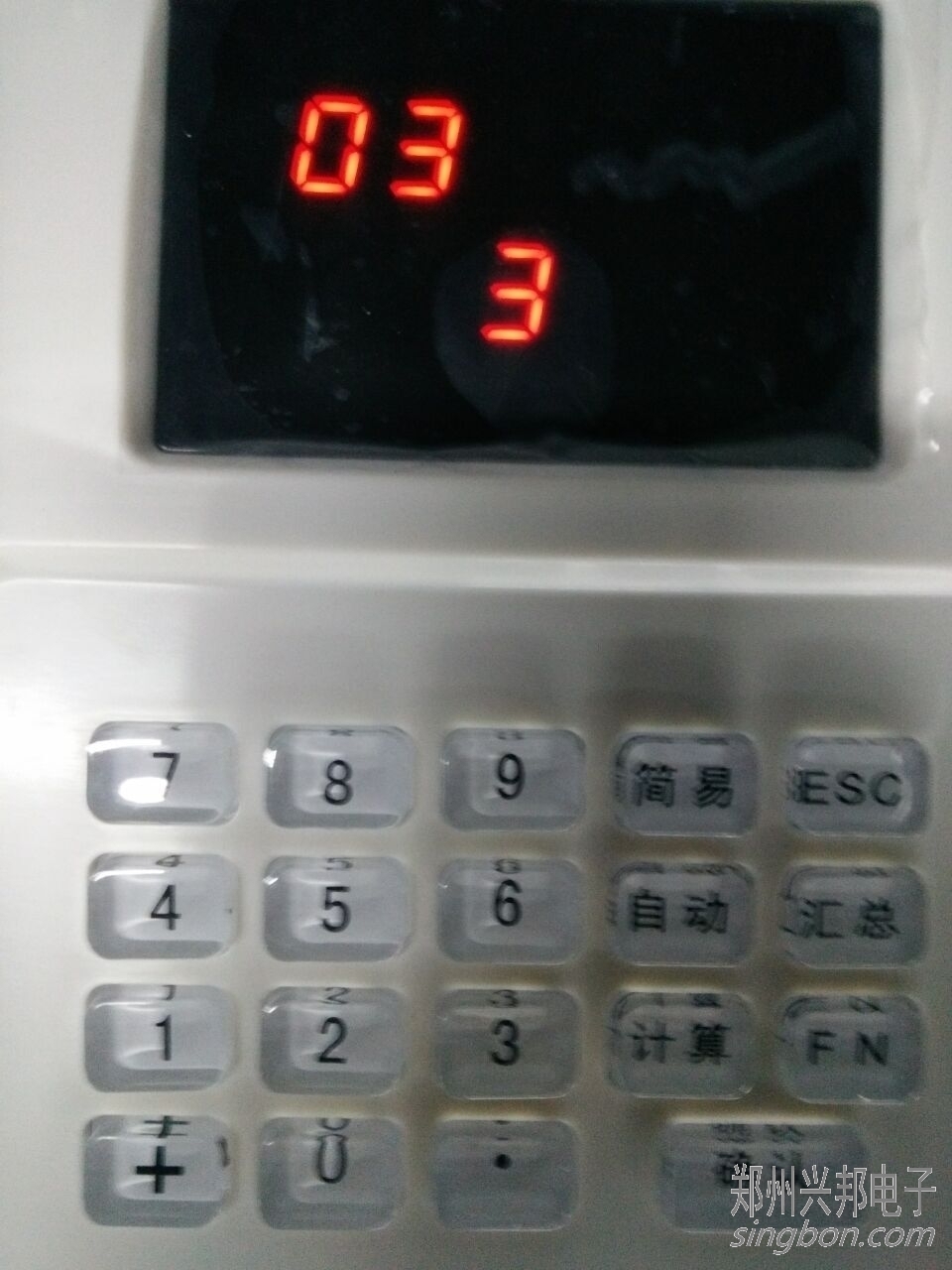 1、打開(kāi)機(jī)器,按匯總鍵,可查詢當(dāng)天的匯總金額。上面顯示的是日期,下面顯示的是當(dāng)天的匯總金額。