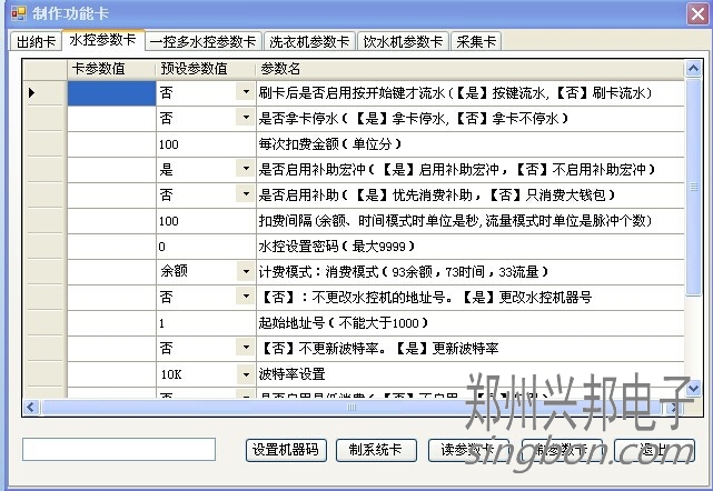 互聯(lián)網(wǎng)一卡通水控一體機(jī)的費(fèi)率設(shè)置是需要在軟件里制一張?jiān)O(shè)置卡,然后拿制好的卡片到機(jī)器上去刷一下。制費(fèi)率卡的步驟如下: