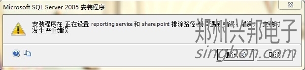 互聯(lián)網(wǎng)一卡通食堂售飯機的軟件,采集的信息都通過軟件設置存在數(shù)據(jù)庫SQL SERVER2005中,所以安裝軟件,首先要安裝數(shù)據(jù)庫SQL SERVER2005,但在安裝數(shù)據(jù)庫SQL SERVER2005時,安裝程序可能會在正在設置reporting和shre point 排除路徑 期間遇到錯誤,遇到的錯誤如圖所示: