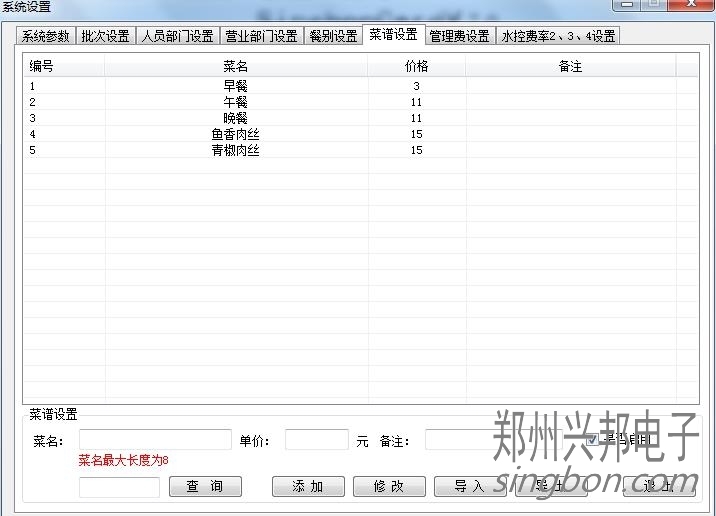 2、管理中心-系統(tǒng)設(shè)置--菜譜設(shè)置。在里面添加需要設(shè)置的菜單。