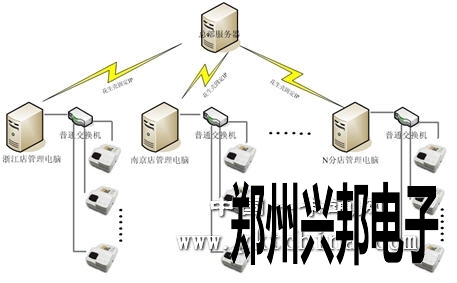 如上圖所示,整個(gè)系統(tǒng)的管理電腦單獨(dú)存在,在剛開始建設(shè)時(shí)就把各個(gè)分店的電腦數(shù)據(jù)庫(kù)單獨(dú)建立,制作卡片時(shí),通過卡片的號(hào)碼段位來(lái)區(qū)分各店的范圍,只是在需要傳輸數(shù)據(jù)時(shí),通過花生殼軟件等工具綁定IP地址,使各家分店和總部服務(wù)器之間的通訊無(wú)地理的局限,實(shí)現(xiàn)整個(gè)系統(tǒng)數(shù)據(jù)的實(shí)時(shí)交換。